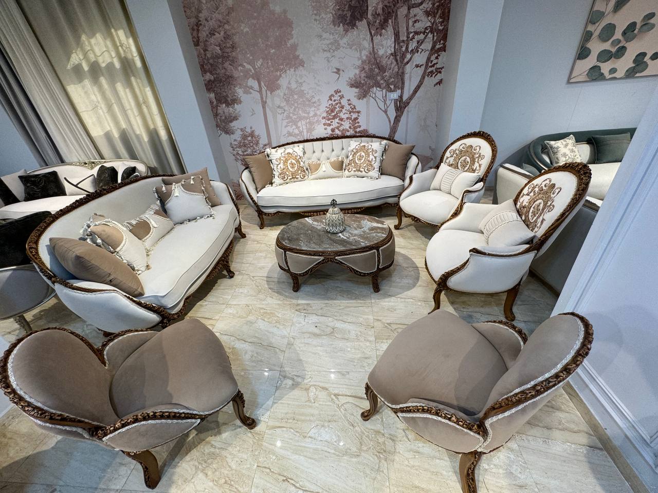 2-1 صالون كلاسيك أوف وايت وبيج
