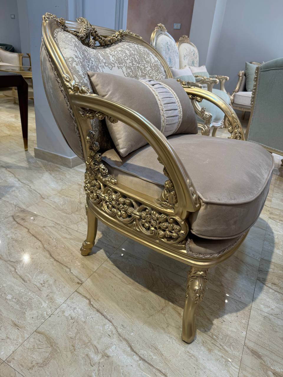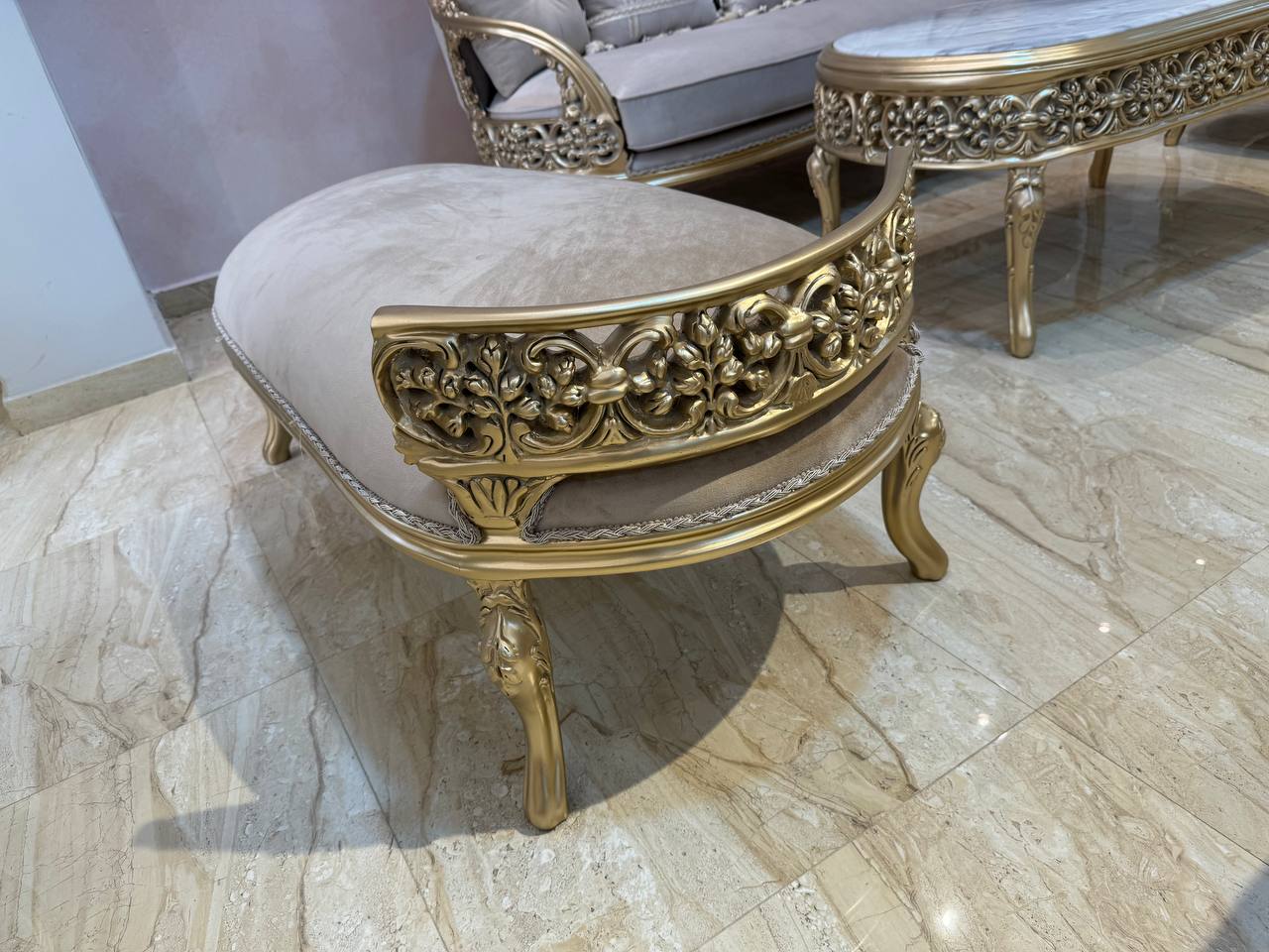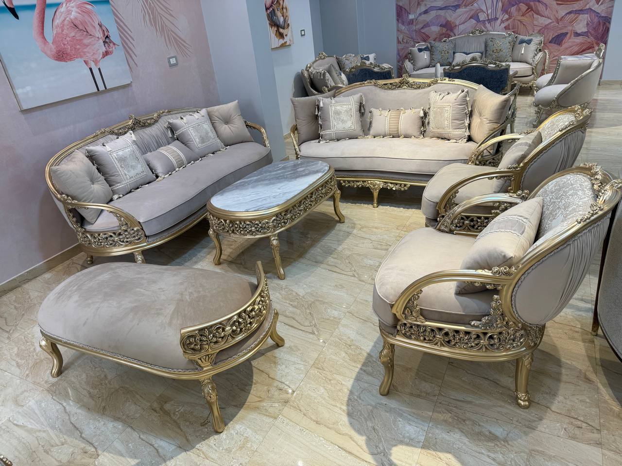 2-3 صالون كلاسيك دهبي بترابيزة رخام